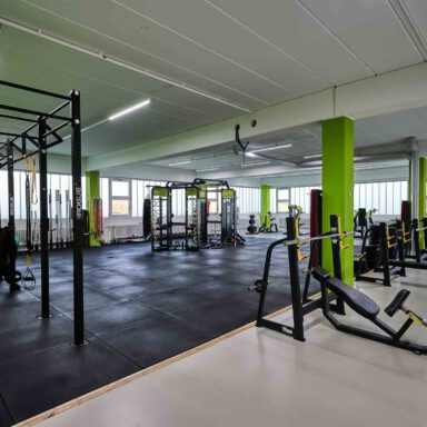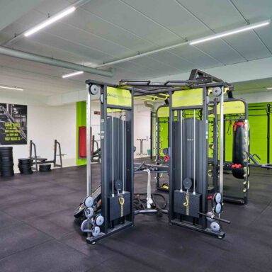 Im Club bzw Functional Fitness Bereich erwarten Dich freie Gewichte (verschiedene Langhanteln, Hex-Bar, Kettlebells,…) und genügend Platz, um Dich auszutoben. Der abfedernde Boden und gummierte Gewichtsscheiben sorgen für relativ geräuscharmes Training. Im Zentrum befindet sich eine Kraftstation, an der zahlreiche weitere Übungen ausgeführt werden können.